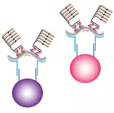 Oligonucleotide probe sets hybridize cooperatively to target RNA and bind to color‑coded Luminex beads. - Signal Amplification